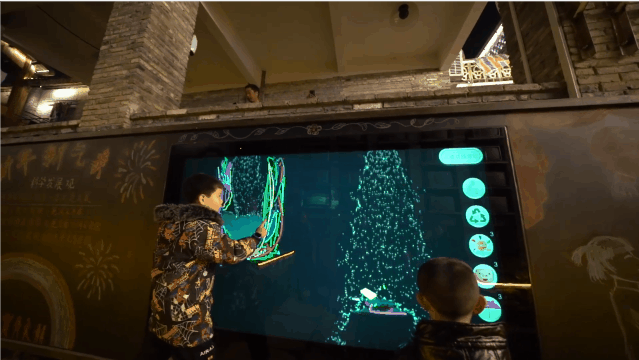 這些互動應(yīng)用、藝術(shù)應(yīng)用,白天是獨特的主題街巷景觀,晚上通過燈光及科技的賦能,成為趣味十足的光影互動裝置。