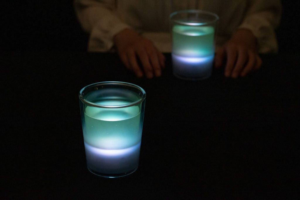 此外,燈光還會與附近的”共鳴的茶”產(chǎn)生同步現(xiàn)象。當人們坐在那里,隨著時間的推移,空間中所有的茶和燈都會一齊閃爍,或一波一波地閃爍。
