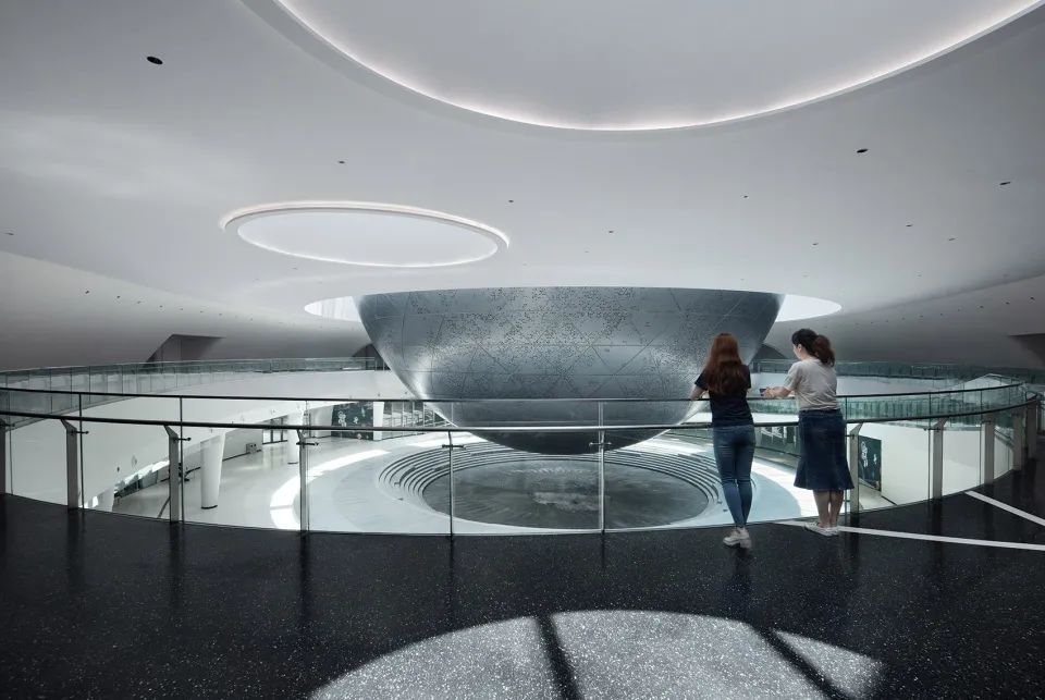 該項目早在14年的時候就已經(jīng)完成的了概念設(shè)計,16年開始施工,直到19年才全面建設(shè)完成,中間經(jīng)歷了疫情,跨越7年的時間,這座全球建筑規(guī)模最大的天文館終于在今年7.17號才正式開館,項目由Thomas J. Wong主創(chuàng)設(shè)計,將浩瀚宇宙融入館內(nèi),打造沉浸式體驗。