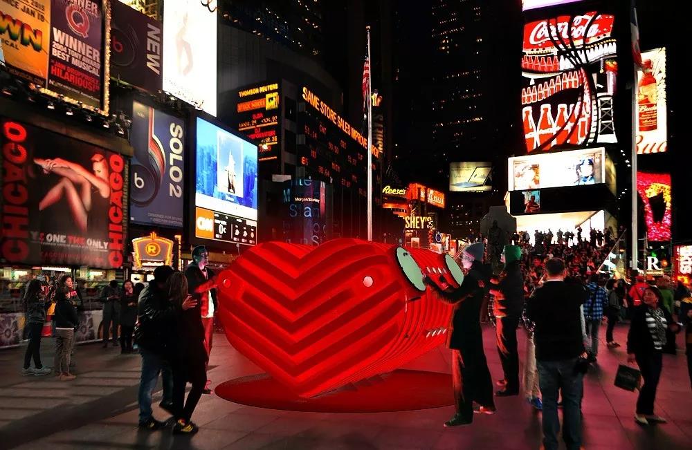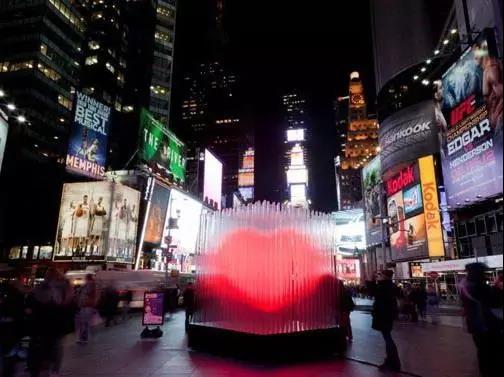 為慶祝情人節,來自丹麥的創意公司設計了心形互動裝置藝術裝置,它高10英尺,由400根透明的亞克力管內嵌led燈形成一個在風中搖曳跳動的紅心,當人們觸摸心形雕塑一旁的傳感器,心就會變的更加亮。