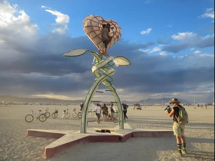 9米的花朵藝術裝置除了外型吸引人之外,最特別的,是這朵花是會隨著外界的變化而開始變化的!這樣的設計來自于他花蕊所設置的感應器。平時看來像是凋零的花朵,只要有任何車輛或世人經過、停留,他就會緩緩綻放,當人離開一段時間后,花朵又會慢慢收起,與玫瑰互動,營造浪漫氛圍。