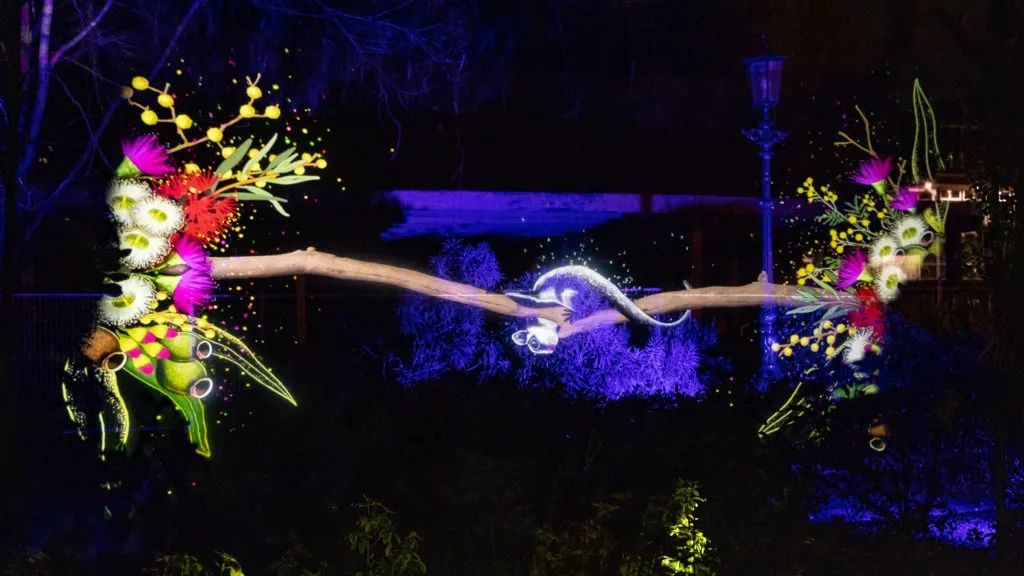 “園藝遺產(chǎn)”和“植物群與動物群”,充分體現(xiàn)了羅莎琳德公園擁有豐富的園林寶藏,在這里游客能看到開花的桉樹,和本土動物雨燕鸚鵡和糖滑翔機,甚至能看到19世紀的的樹木活了過來,與游客講述著古老的故事;“星光”和“南極光”則能讓人感受天空的寧靜,不僅能看到靜謐的星空,也能看到原本處于兩級的極光,當夜空中出現(xiàn)迷人的極光時,誰又能不被它的魅力征服呢?此外也有“藝術場景”和“挖掘記憶”,回顧本迪戈藝術館的繁榮,以及本迪戈的淘金時代。