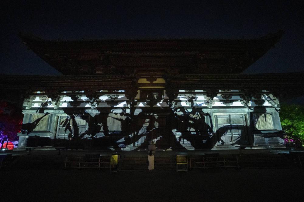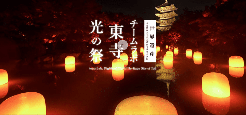 除了團(tuán)隊在其他展覽中共同的作品共振森林、生命之樹和發(fā)光呼應(yīng)的球體等互動裝置外,還有針對東寺特別創(chuàng)造的藝術(shù)作品。