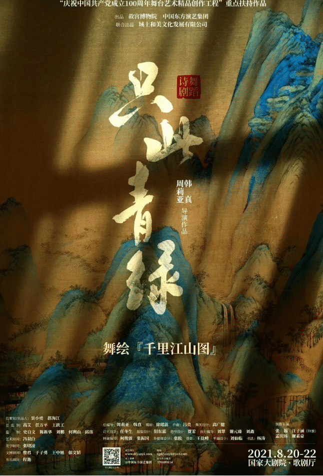 無名無款,只此一卷。青綠千載,山河無垠。近日,由故宮博物院、中國東方演藝集團有限公司、人民網股份有限公司共同出品的舞蹈詩劇《只此青綠》,將傳世名卷《千里江山圖》化身舞蹈詩劇《只此青綠》搬上舞臺,首輪演出于8月20-22日在北京國家大劇院隆重登場。一輪明月,朗照千年,樂聲悠揚,舞步翩躚,水墨青綠,繪就江山萬里,以‘青綠’彰顯中華之美,用舞蹈重繪《千里江山圖》,首演創下2.47億曝光量,人民網、人民日報等各大官媒爭相報道。