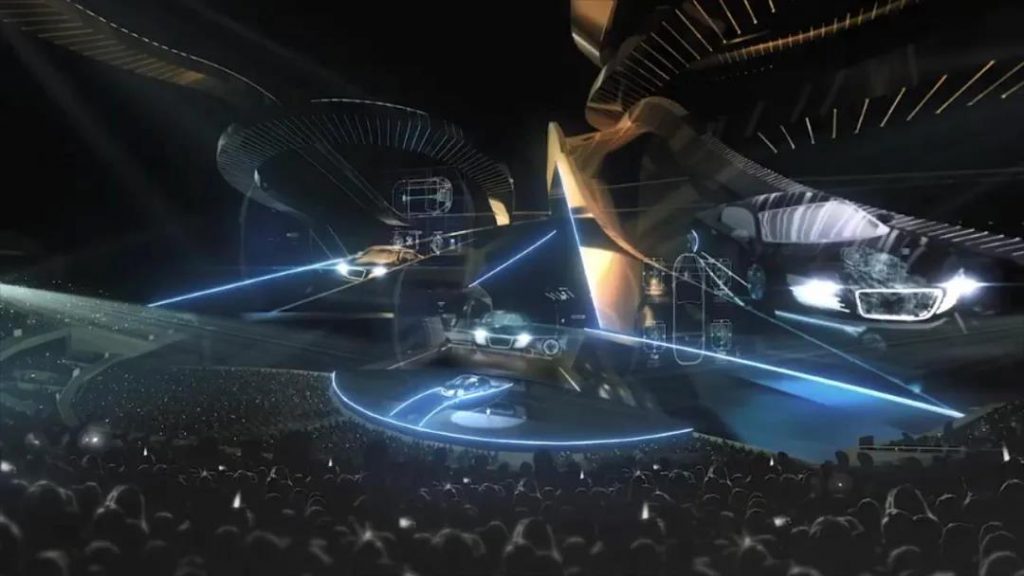 場館內(nèi)有一大塊15793多平方米的LED屏幕,10臺8K攝像機來捕獲360度全景視頻,獲得更高清的畫面。并且場館內(nèi)無需佩戴眼鏡,就可以享受VR體驗。