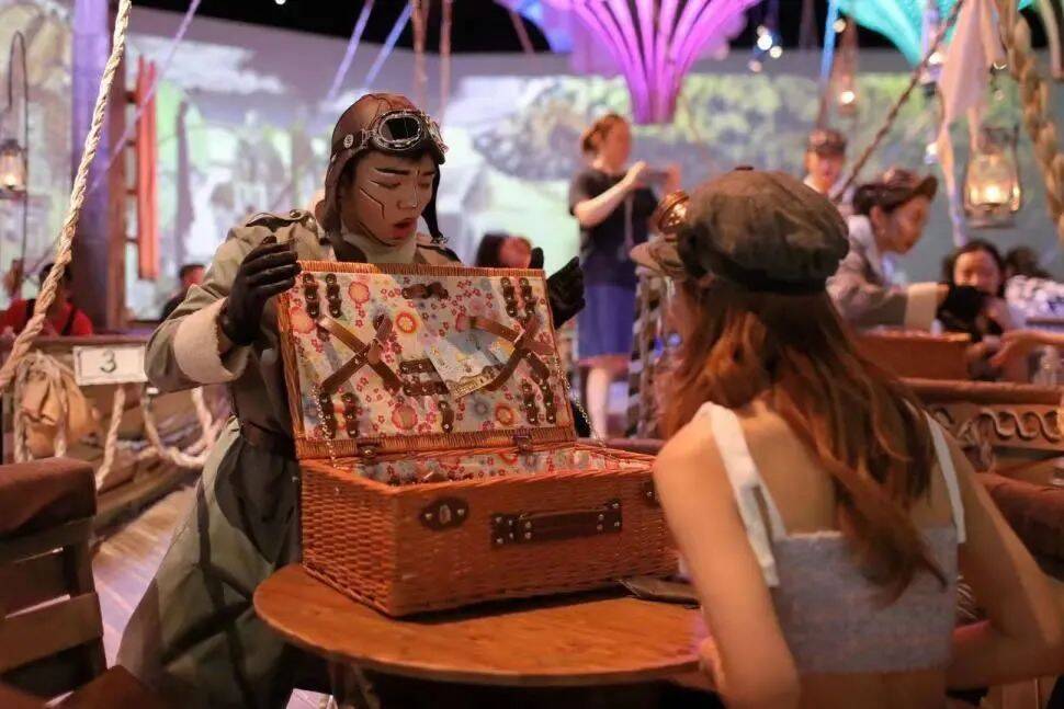本次登錄上海的《玩味探險家》總共有五幕,時間和空間都將在這里被折疊,觀眾將穿越童話繪本,進入一個滿是“熱氣球”的冒險世界,戴上飛行帽,變身環游世界尋覓美食的探險家,飄浮穿越五大洲,在不同目的地品嘗當地美食,創造屬于自己的沉浸式玩味之旅。