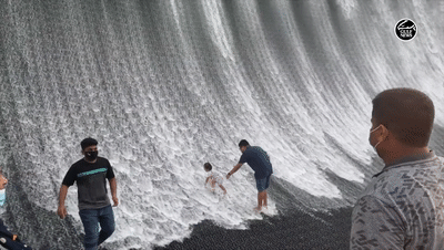 位于迪拜 Jubilee 公園內(nèi)的《Surreal》,面積有半個足球場大小。站在高聳的藝術(shù)作品下方,飛流直下的瀑布即將吞沒人,卻又突然消失。