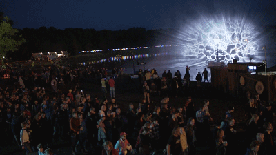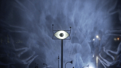 這個藝術(shù)作品由設(shè)計師Thijs Biersteker設(shè)計。帶有迷幻星云效果并且在中間有個像眼睛的巨型藝術(shù)裝置,將傳感器藏于周圍環(huán)境中;同時,視頻輸入由音頻和視頻傳感器的現(xiàn)場直播完成。