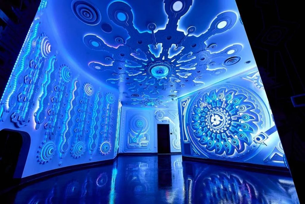 在“蟲洞”世界里,變形的圖像與震撼的音樂相互配合,為參觀者營造出宇宙漫游般的奇妙體驗。