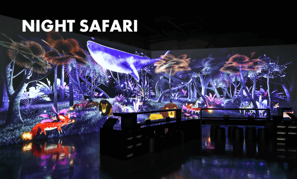 降臨寂靜夜晚的野生動物園,夜間傳來演奏聲音,動物們靈活地移動。在長長的裸眼3D屏上展開的巨大夜晚的野生動物園里,用自己的雙手賦予色彩斑斕的動物們的生命力。