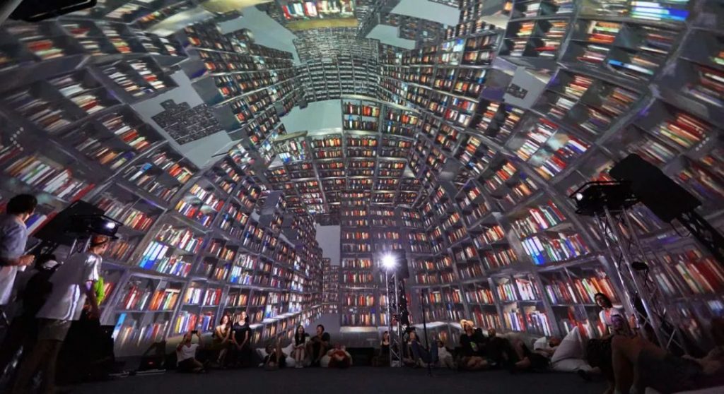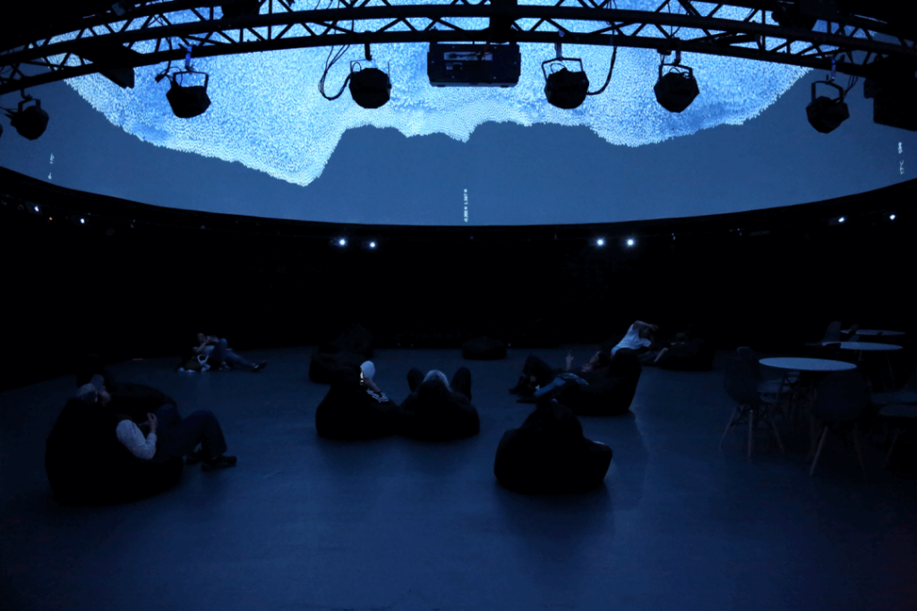 整個建筑的圓頂裝有252臺投影儀,形成了沉浸式360度投影表面,館內外的參觀者均可看到,這使得它成為世界上最大的360度投影面。