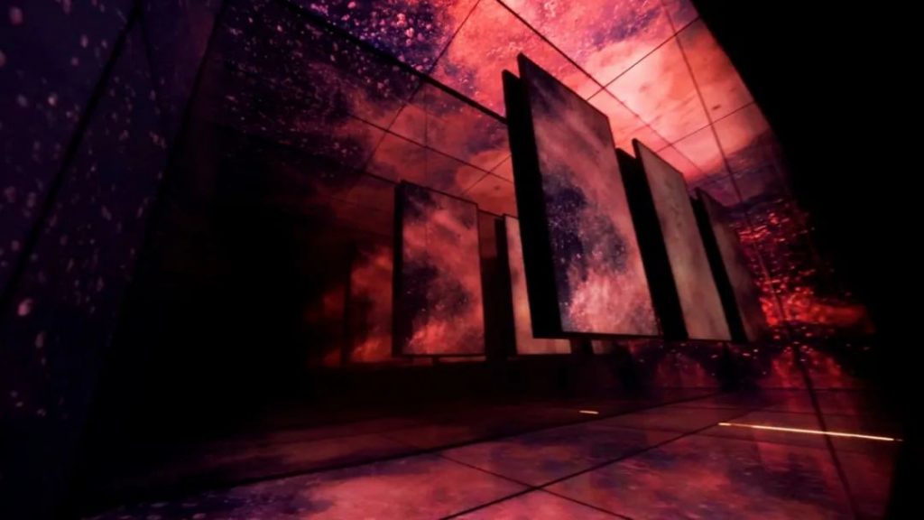 從阿塔卡馬沙漠的星空中吸取靈感,結合品牌文化調性以及NIM(尼桑智能移動)的展示,在內部設計的一個沉浸式藝術裝置。當觀眾來到里面,可以與3種不同類型的內容環境進行互動,好像可以觸摸璀璨的星空、可以與深藍色水里的金魚嬉戲。他們拿出手機拍照,或者伸手去觸碰屏幕上的花,與環境互動。