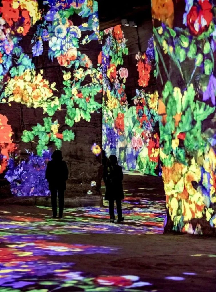 法國南法普羅旺斯采石場于60年代被廢棄,如今藝術(shù)團隊Gianfranco運用數(shù)字投影將世界名畫鋪滿1米的巨大石墻、石柱和地板,使得廢舊的采石場搖身一變成為6000平方米的巨大光影藝術(shù)基地,它用光影藝術(shù)重塑藝術(shù),致敬藝術(shù)家。