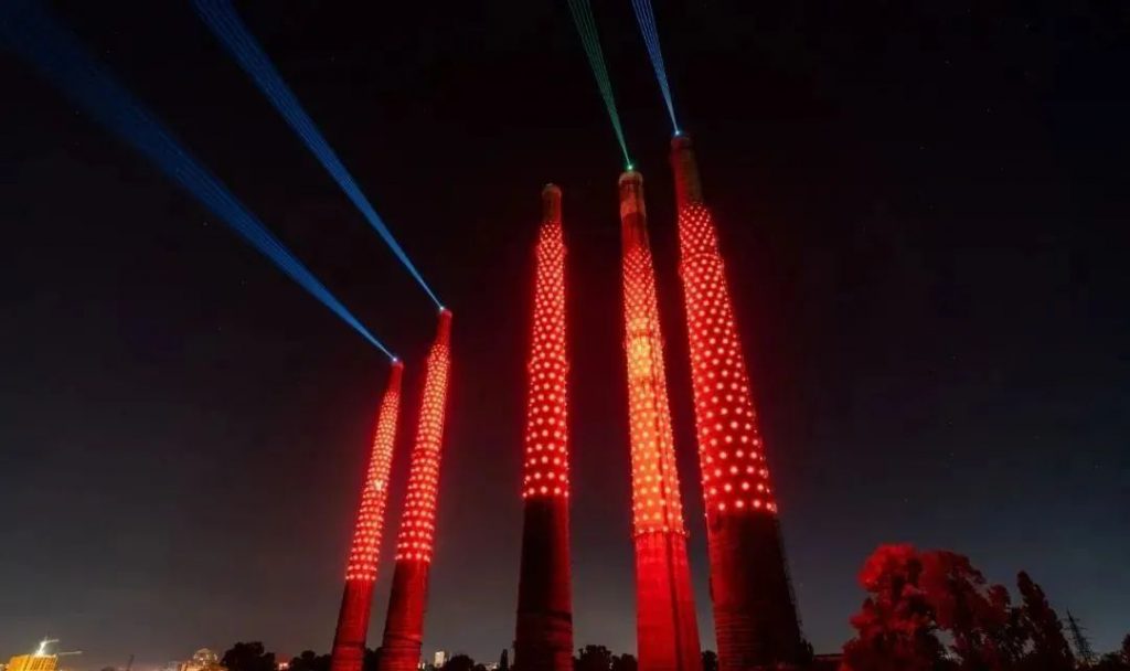 在烏克蘭的第聶伯羅市的一個老廠區(qū)里,完好的保留著13個閑置煙囪。當(dāng)?shù)厮囆g(shù)團隊Expolight 對其中五個煙囪進行了改造,將它們轉(zhuǎn)化為 “盛開的數(shù)字鮮花”,具有像素?zé)?、激光和無線同步功能,是第聶伯羅市從工業(yè)中心向高科技城市轉(zhuǎn)型的新戰(zhàn)略的象征,為城市的發(fā)展注入了新的活力。