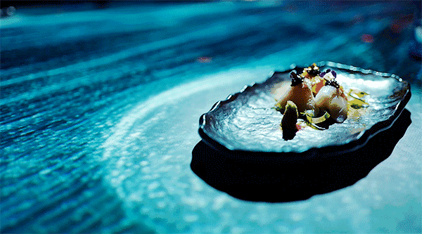 沒想到吃飯也能有沉浸式用餐體驗吧,以日本SAGYA餐廳為例,這是Teamlab團隊在東京銀座設計了一個沉浸式互動餐廳,用餐者可獲得多重感官的用餐體驗。餐廳在傳達日本口味的同時,也可享受幻真幻假的藝術環境,像是踏上了一場美食的奇妙之旅。投影投射在空間的每一面墻壁和餐桌上,投影的物體大小和形狀會受到餐盤的影響。投影圖像還會受到就餐者行為的影響。當用餐者移動盤子位置時,“水流”也會改變方向。