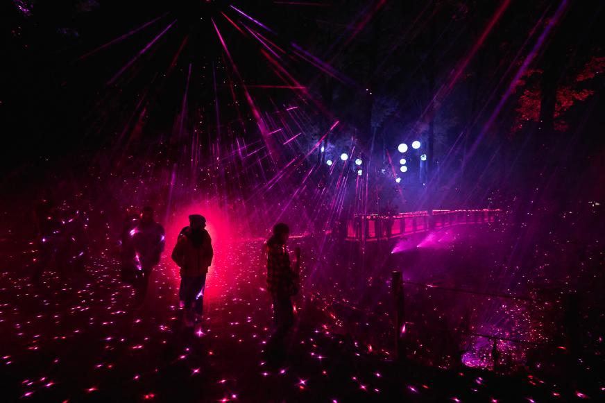 Moment Factory Lumina魔幻夜游系列的第16個——Oriens Lumina在上海開幕。在上海郊區奉賢區九樹未來藝術中心的場地上創造了沉浸式多媒體體驗。戶外娛樂設施精心編織了燈光、投影、音樂和互動,放大了自然環境的奇觀。夜幕降臨時,游客將冒險穿過一個充滿多媒體的超現實森林,在那里他們將見證失去的光的回歸。沿著蜿蜒的小路,穿過五個神秘的領域,游客將遇到不同的能源——水、木、火、金屬和土——和一些意想不到的現象在近1小時的游覽過程中,游客將穿梭于黑夜中的森林小徑和多媒體構建的虛擬世界之間,經歷一場關于“光”的冒險,開啟喚醒想象力的探索發現之旅。作為藝術中心提供的夜間對應品,這也是Lumina系列漫步首次進軍中國市場。