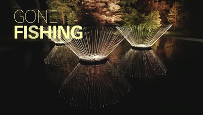 每一個都是用100根釣魚桿在發光的蝕刻圓盤上形成的藝術裝置,在小湖平靜的水面上投下美麗的倒影。