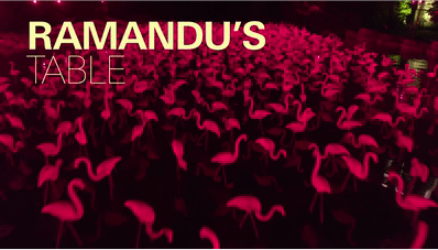 1000只火烈鳥藝術裝置在鐘樓附近的梨形盆地里嬉戲。