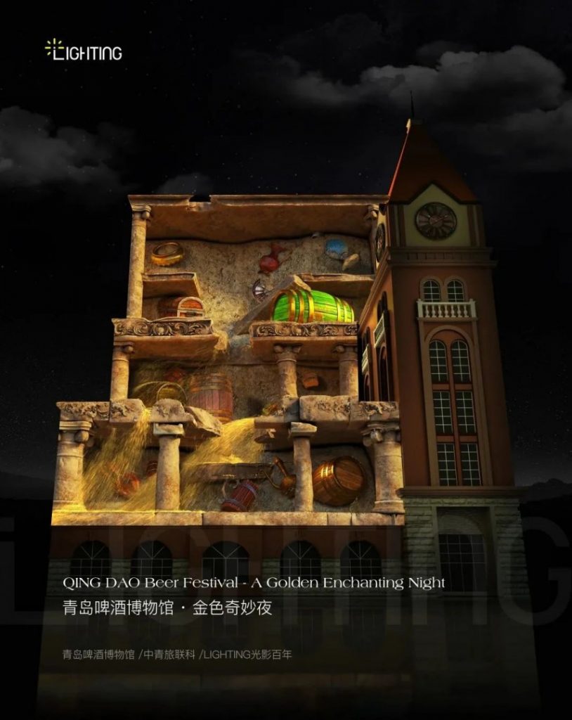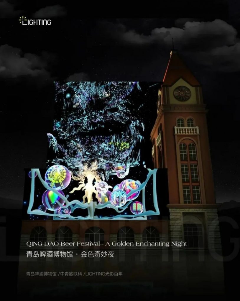 青島啤酒博物館始建于 2003年,位于市北區登州路56號, 是國家一級博物館,也是世界五大啤酒文化殿堂之一。恰逢青島啤酒博物館建館20周年,以工業旅游發展升級煥新為主題,各行業龍頭企業聯袂打造沉浸式演繹夜游「金色奇妙夜」,緊抓住夜間經濟、沉浸式體驗、音樂劇等消費新模式,不斷延伸啤酒文旅業態的輻射度。