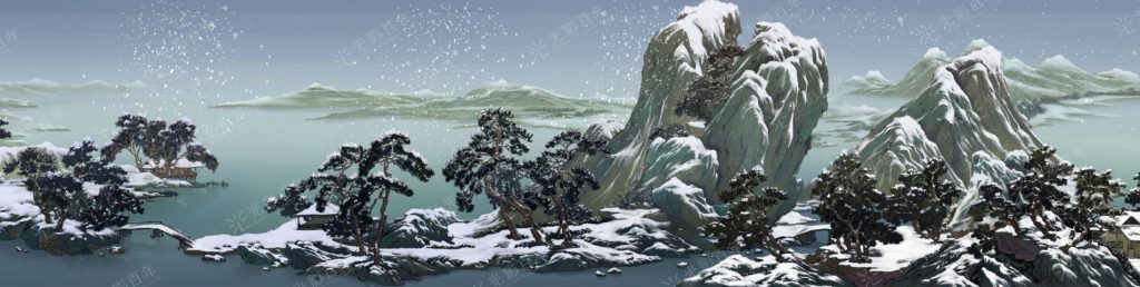 該作品完全遵循古畫原作的構圖、設色、用筆等技法,結合數字繪畫的創意形式,仔細理解其中意境,延伸創作出春夏秋冬之四季變化景象: