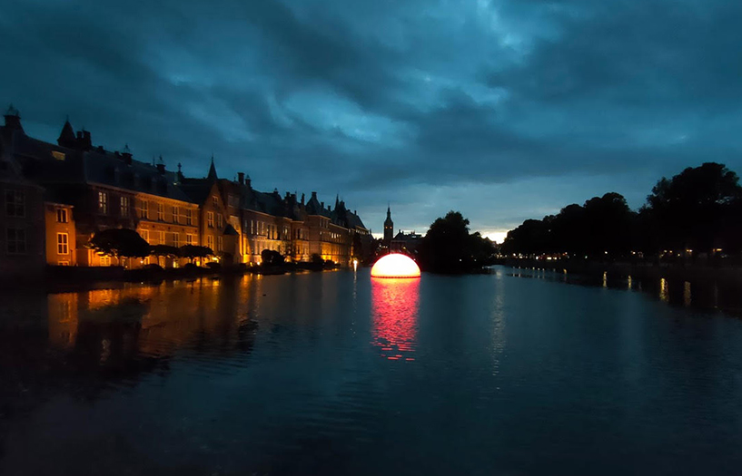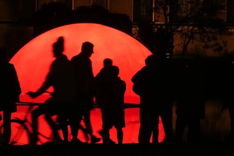 裝置由 Mike Rijnierse 和 Ludmila Rodrigues 設(shè)計,靈感來自電影和繪畫中對日落的描繪。一個巨大的充氣太陽,在白天和夜晚發(fā)出充滿活力的紅光。