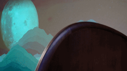 投影的月亮由一個咖啡杯控制——移動咖啡杯,月亮也會隨之移動。此外,游客還可以通過翻轉(zhuǎn)沙漏,來改變風(fēng)景壁畫。