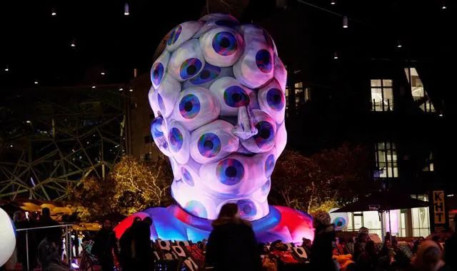 在一個日益數字化的世界里,人們的注意力在不斷分散,這個8米高的巨大充氣結構由國際藝術團體 CoolShit 的幾十個彩色眼球組成,令人有種被監視的詭異感。