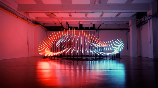《Electric Dandelions》高達28英尺,曾在紐約市、多倫多、洛杉磯和耶路撒冷展出,是一種別致的蒲公英花造型燈,散發出絢麗的色彩和閃爍的燈光,為整個城市帶來活力。