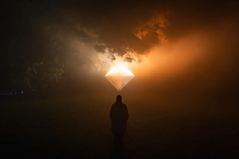 穿過云霧縹緲的隧道,進入金色夕陽薄霧中,在樹林里,旋轉的 LED 和聲波頻率將森林中隱藏的波長引導出來,而在樹林深處,樹木用獨特的音樂與發光的水晶燈進行交流。