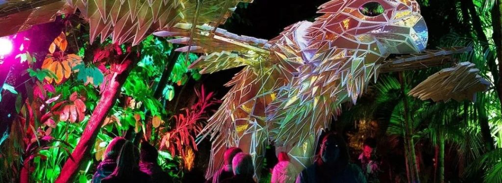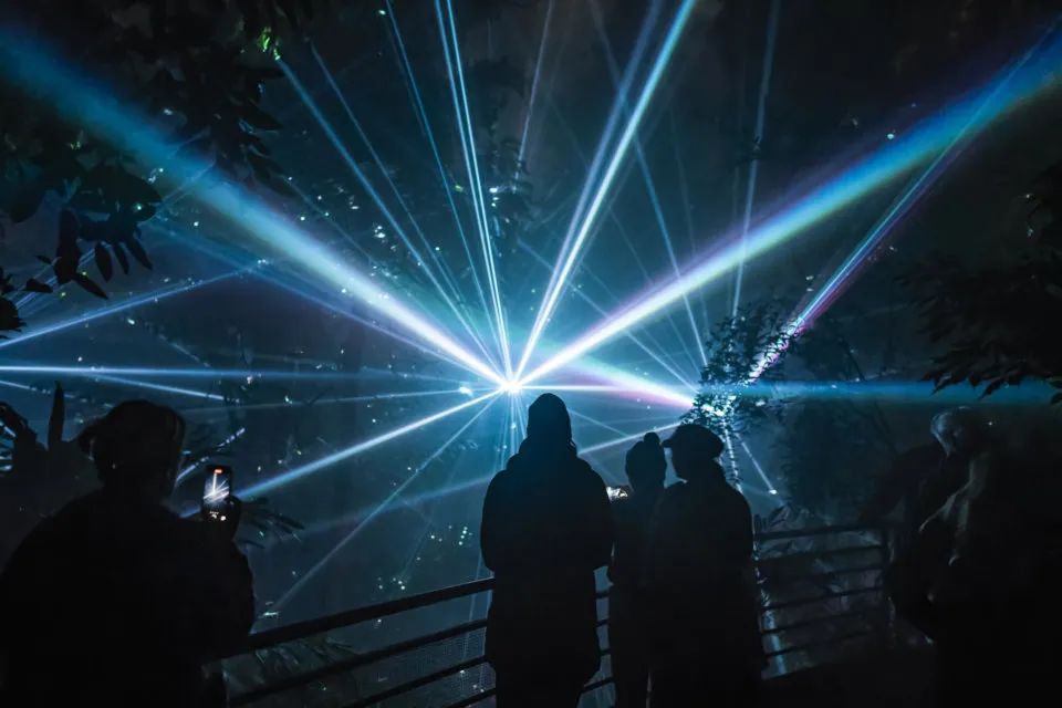 基于人類與自然關系的探索,通過視頻投影、燈光效果、激光、煙霧和音樂將阿德萊德植物園變成奇妙的燈光森林,讓人們體驗不同尋常的光影藝術。
