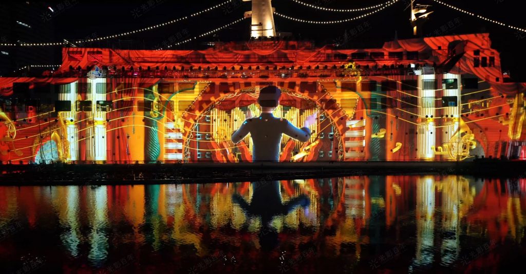 3D技術(shù)的引入使得燈光秀更加震撼。通過(guò)使用投影技術(shù),建筑物的表面成為了巨大的畫布,藝術(shù)家們可以在其上展示無(wú)限創(chuàng)意。無(wú)論是在建筑的外墻上呈現(xiàn)出栩栩如生的動(dòng)態(tài)圖像,還是通過(guò)投影映射在建筑的立面上創(chuàng)造出虛擬的景觀,3D燈光秀為建筑注入了新的生命。觀眾不再僅僅是看到建筑,而是被引導(dǎo)進(jìn)入一個(gè)充滿魔幻色彩的世界。