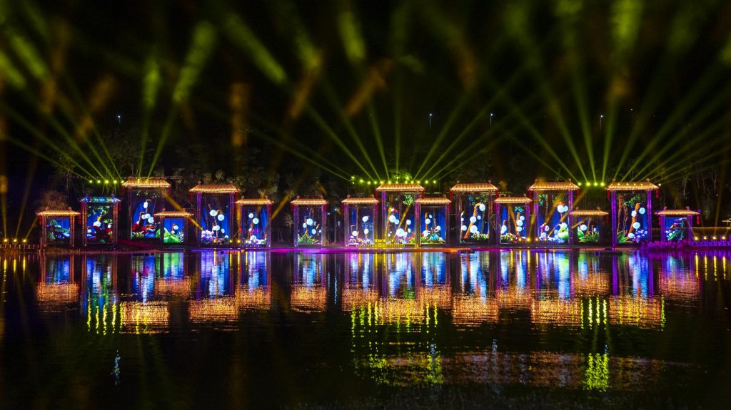舞美夜游正是城市夜晚的一種獨特表達方式,將城市打造成一個流動的藝術空間。這不僅使城市在夜晚煥發出新的生命力,也為游客提供了一場充滿藝術氛圍的夜晚之旅。舞美夜游,讓城市的夜晚不再僅僅是暗淡的時光,而是充滿了藝術的光輝,成為人們流連忘返的城市之夜。