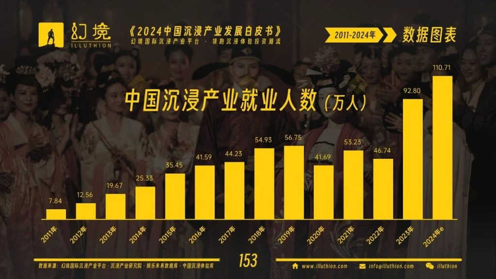 《2024中國沉浸產業發展白皮書》已向世人宣布,中國沉浸產業的發展勢頭強勁。截至2023年,中國沉浸體驗項目數量已達32024個,創造了近92.8萬個就業崗位。市場規模達到927億元人民幣,總產值更是高達1933.4億元人民幣。這龐大的市場體量揭示了巨大的潛力與價值。同時,我們也必須清晰地看到,全球沉浸產業和中國沉浸產業正朝著不同方向邁進:全球沉浸產業的焦點正轉向強化敘事深度和促進認知轉變,而中國市場在文化表達和商業模式創新上表現突出。這并非孰優孰劣的問題,而是揭示了一個融合發展的契機——如何將中國獨特的文化底蘊和商業智慧,與全球領先的敘事技巧和情感連接能力相結合?
