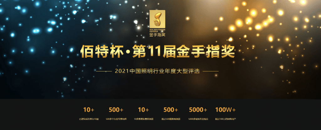 “金手指獎”是由中國照明網(wǎng)創(chuàng)設(shè)的中國照明行業(yè)首個綜合性大獎,是照明行業(yè)最具影響力和權(quán)威性的獎項之一。自2011年創(chuàng)辦以來,已成功舉辦十屆,建立了成熟的評選體系。由其堅持“公平、公正、公開”透明的原則,依靠著強大的評委陣容,不斷革新的評審體系,奠定了金手指獎的行業(yè)高度。在專家學(xué)者的指導(dǎo)下促進(jìn)了自身發(fā)展的同時,更實現(xiàn)了照明行業(yè)整體的共同進(jìn)步。