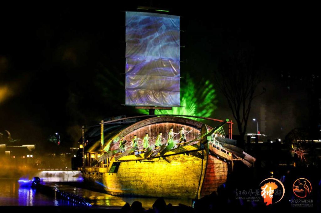 本屆全省旅發(fā)大會(huì)主的主會(huì)場(chǎng)及首站考察觀摩線路項(xiàng)目:全域水景沉浸式夜游后河·夢(mèng)回廬陵景區(qū)。